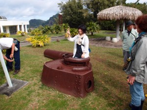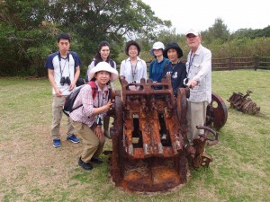 一日戦跡ツアーの締めは、97式中戦車の砲塔や星型エンジンの前での記念撮影。 砲塔の溶接部分なども、隠れた見所ですよ。