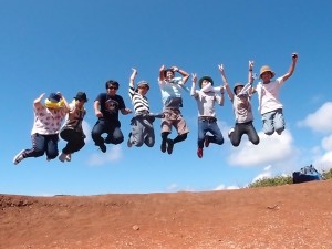 ハートロック上。これを一度やってみたかった!!んですよね。 バッチリ決まりましたね。山歩き後に何回もジャンプさせてすみませんでした。。 右から4人目頑張ってます!(わたくし) 撮影協力、かっちゃん。ありがとう!