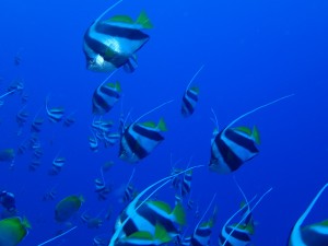 ついに、念願の聟島周辺のダイビングに挑戦することができました! 夢の嫁島「まぐろ穴」は、イソマグロが多く、しかもシロワニを4頭も見る事が でき、正に夢でした。ただ、船酔いがきつくてカメラを持って行かなかったことが 悔やまれます。不覚。