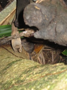 我が家の前の、二階建ての高さほどもあるパパイヤの木の程よく熟れた実に… こちらを見下ろす様に眺めている一匹。 慌てた割には、まあまあ可愛らしく撮れてますね。 しかし、ちょっと驚きました。