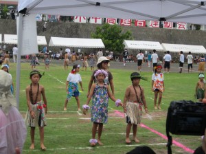去年は雨で延期になりましたが、今年は予定通り運動会が開催されました。 小中高校、一般合同の大運動会です。 わたくし(心)もバイト先の診療所チームでリレーに出場しました。。 が、中高生とまともに張り合ってしまい、、あえなく転倒…台無しにしてしまいました。 チームの皆様、大変申し訳ありませんでした。 午後からの雨で、一部中止になってしまいましたが、無事大会を終える事ができました。 よかったですね。 小学生から大人まで、南洋踊りを踊っていました。